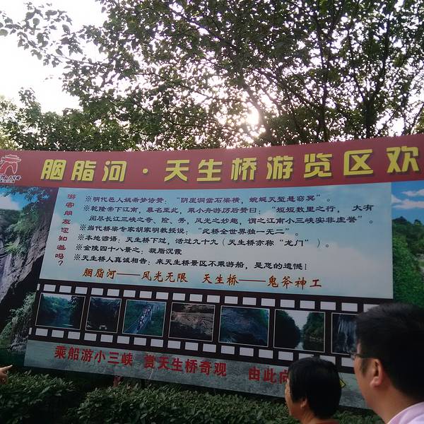 溧水的有名景点,上有天生桥,下为胭脂河,游船行驶路线,来回十几分钟,自然风光,有白色的水鸟在水...溧水的有名景点,上有天生桥,下为胭脂河,游船行驶路线,来回十几分钟,自然风光,有白色的水鸟在水面飞来飞去,两次都是潮湿陡峭的山崖。