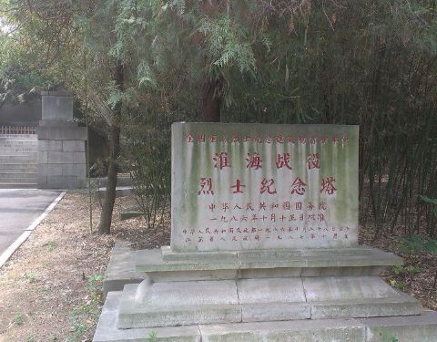 淮海战役烈士纪念塔位于江苏省徐州市南郊南郊凤凰山麓,隶属泉山区奎山街道,1959年4月4日筹建,于1965年11月6日正式建成开放。淮海战役烈士纪念塔坐落在葱郁林木和200多个花坛间,塔高38.15米,面东朝阳,巍然屹立。 纪念塔塔体由回廊、角亭环抱。塔座正面,镌刻碑文。塔座两侧为大型浮雕,右侧是军人一往无前的英雄形象,左侧是人民奋勇直前的豪迈雄姿。塔南、西、北设146米长廊,廊画上刻有淮海战役中牺牲的31006名战士的英名,镶嵌着反映淮海战役的大型陶瓷壁画。塔前,有宽敞的平台和长250米、宽31米的129级台阶。