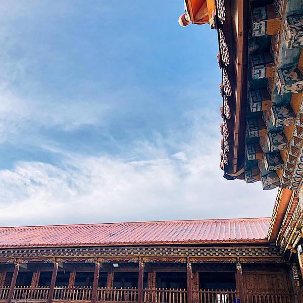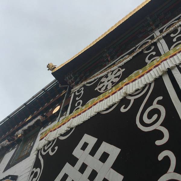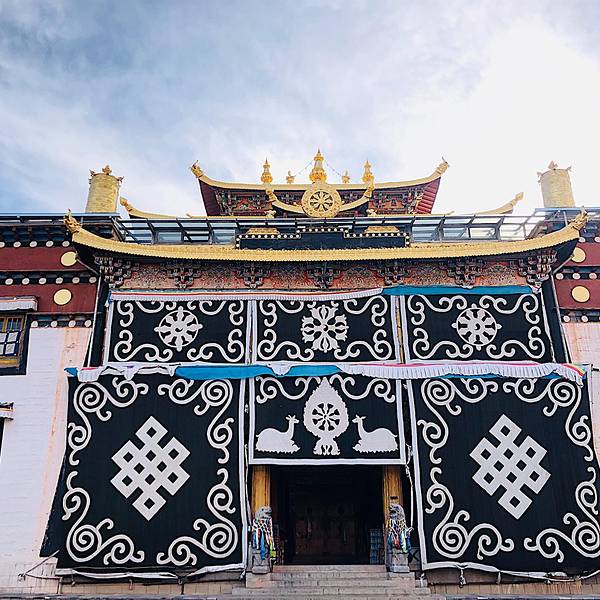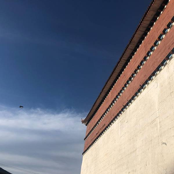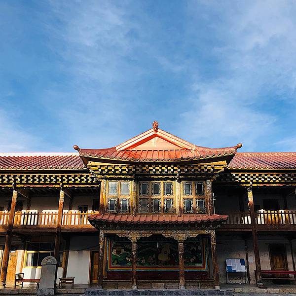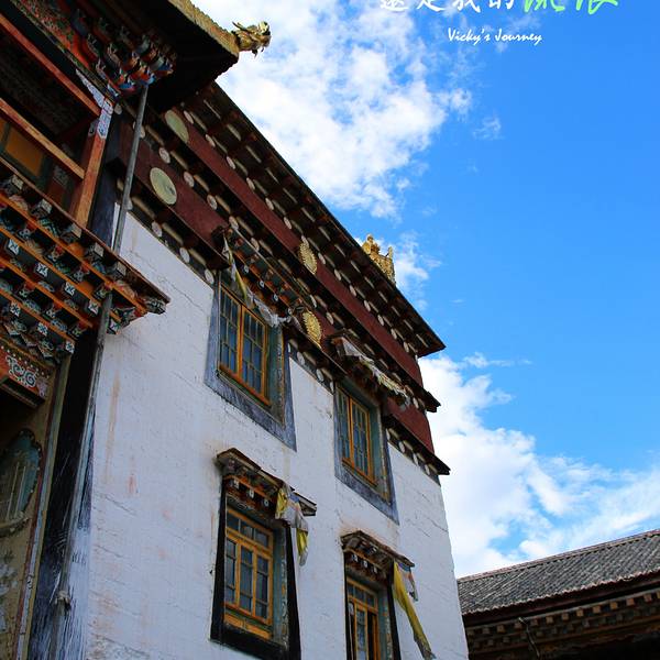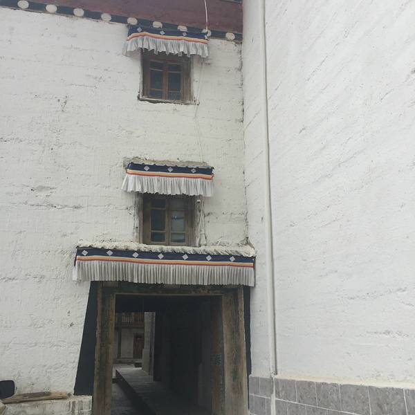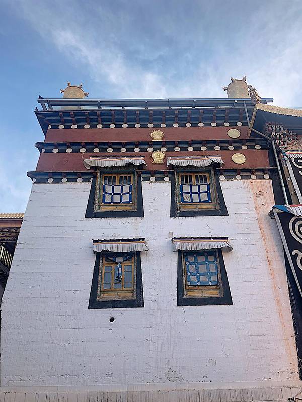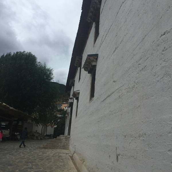 未进寺庙,给我们先带来的视觉震撼的,就是它的外墙。此类白墙与四方窗的搭配是构成藏族建筑的不二特色等参观完松赞梅里酒店,我们调研小组要去最后一个景点啦,也是本次调研的终点-松赞林寺