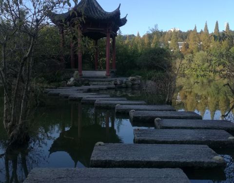 茨坪地处井冈山风景区中心,这里不仅是景区的一部分,有不少红色革命旧址和遗迹供参观,也是个挺干净的小镇。类似庐山的牯岭,茨坪是井冈山旅游的吃住行大本营。无论你以何种方式来到井冈山,第一站一定是这里。井冈山景区观光车总站、茨坪长途车站、火车站-茨坪班车点均在镇内,又因为自驾车辆不允许驶入主要景点,因此即使你是自驾来的,也必须将车停在镇上,并在此换乘景区观光车去到那些主要景点。茨坪的景点都包含在井冈山风景区的大门票内,以红色为主。如果不是对红色革命历史特别有兴趣,可安排在每天主要游线行程结束后,选择其中几个游览。小镇地方不大,却挤满了建筑,住宿选择很多,好些的有老牌的景泰宾馆、井冈山宾馆。百来元的小店也很容易找到。吃住集中的是镇中心偏北的天街一带,也有不少小店可以买到当地土产,比如井冈山红米。旧址群对面的挹翠湖公园,是镇中十分优雅的一块绿地。公园中间是一个小人工湖,四周绿树环绕,早晚来此散步感觉不错。公园西面的井冈山革命博物馆建设得颇具规模,可以通过图文和陈列,以及一些声光电效果,系统了解革命时期的人物和他们的事迹,喜欢历史的游人不容错过。而挹翠湖公园南面不远,南山公园山顶一处工农兵群雕是其标志,附近有几个观光台可以赏景。