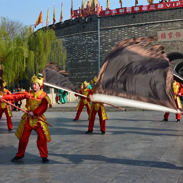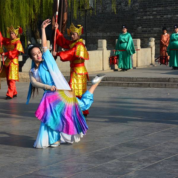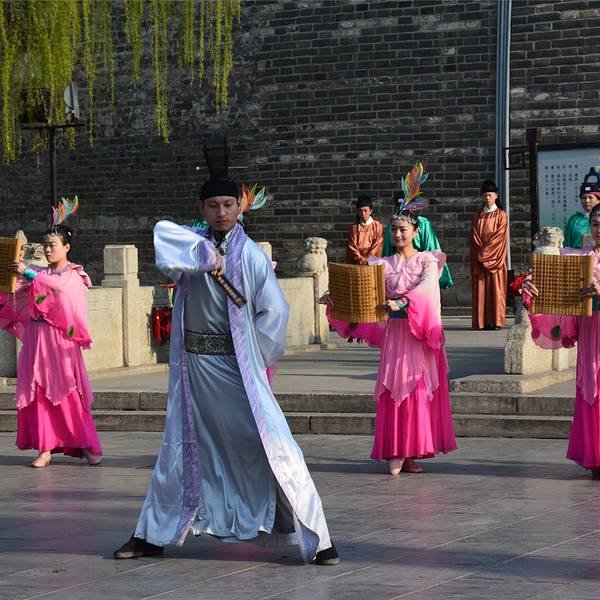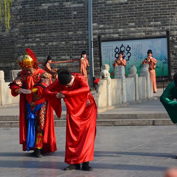 这表示开城仪式圆满结束了,三孔景区正式开放参观。舞姿轻盈,犹如无数的花瓣轻飘天地。这是“射”第二天很早我就起床了。整理好了行李,忘掉昨晚的不愉快,开始一天的行程。快八点时我将房间退了,沿着神道路向孔庙走去。当我快走到南门的时候,突然听到前方有人拿着话筒喊话。具体内容我没听清,只听到“开城...第二天很早我就起床了。整理好了行李,忘掉昨晚的不愉快,开始一天的行程。快八点时我将房间退了,沿着神道路向孔庙走去。当我快走到南门的时候,突然听到前方有人拿着话筒喊话。具体内容我没听清,只听到“开城仪式”四个字。听到这话,我赶紧快跑几步上前。城门前方的广场聚集了很多人,然而城门紧闭。过了一两分钟突然听到后面有锣声传来。回头看去,有一支穿着明代服装的队伍敲着锣,顺着神道路的中线走来。他们走到了城门下方站定。只听到那着蓝色官服的一声高呼“时辰已到,开~城~”。话音刚落,城墙上钟鼓之声响起,城门缓缓打开。之后走出一对队士兵,领头的两位持戟,后面的握弓。他们走到广场中央,分两队将广场围住。跟在队伍后面的还有一位武将和两位文官,前面一位身着红官服,后面的身着绿官服。三人呈品字形队列,向四面鞠躬行礼,这是孔子六艺中的“礼”。行礼过后,一群身着粉红舞裙的少女分别从两旁踏着舞步走来,在广场中央偏偏起舞。舞姿轻盈,犹如无数的花瓣轻飘天地。这指的是六艺中的“艺”。紧接着一群身着铠甲的兵士走到广场的中央,他们时而握弓直立,时而弯弓向天。从他们身上我看到了校场上精忠报国的雄心壮志。这是“射”。当这些士兵退下后,一个儒生手持书卷走到中央。他将武术与舞蹈融为了一体,舞步稳而快。手中的书卷仿佛是一把利剑,在空中来回穿行,有着一舞剑器动四方的气概。这是“书”。再往后那对兵士舞动着旗帜在场上来回奔跑,仿佛许多驰骋的战车。眼前的场景仿佛让我想到了两千多年前那个战火纷飞的年代。这是“御”。而后是一段独舞。一个身着蓝色舞蹈服的女子手持彩扇偏偏起舞,仿佛一只花丛中的蓝色蝴蝶。也只能用一个美字来形容了。这是“乐”。在节目的最后,少女共同举起写着“有朋至远方来不亦乐乎”的牌匾。这表示开城仪式圆满结束了,三孔景区正式开放参观。 展开
