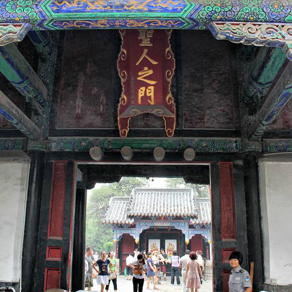 实用 孔子是中国的圣人,作为控制后代敕封衍圣公所居住的孔府大门,当然也就称之为圣门了孔子是中国的圣人,作为控制后代敕封衍圣公所居住的孔府大门,当然也就称之为圣门了。圣府大门为悬山顶,显示出作为大门,毕竟孔子不是帝王,不可能拥有故宫午门的规格,而仅为普通的悬山顶。上书“圣府”,据说...孔子是中国的圣人,作为控制后代敕封衍圣公所居住的孔府大门,当然也就称之为圣门了。圣府大门为悬山顶,显示出作为大门,毕竟孔子不是帝王,不可能拥有故宫午门的规格,而仅为普通的悬山顶。上书“圣府”,据说为严嵩书写,但不知根据如何,而且依照孔子后人的品行,即使为严书,亦不可能悬挂至今,与历朝历代帝王并行。现在的圣门只开中门,两侧门上贴有年画,不仔细看根本看不出这就是中华第一家族的宅邸。至于对联,导游道有牵强附会古代异体字所谓,不值一谈。圣府大门滞后还有一个圣人之门,颇有意思,到底是步入此府者为圣人还是步出此地皆为圣人?这就与“圣府”不同而多了一层意蕴。圣人之门后有重光门,共同组成了孔府大门。这些看起来并不起眼的门后,却别有一番天地,这也许是中国古代家族内敛低调的体现。 展开