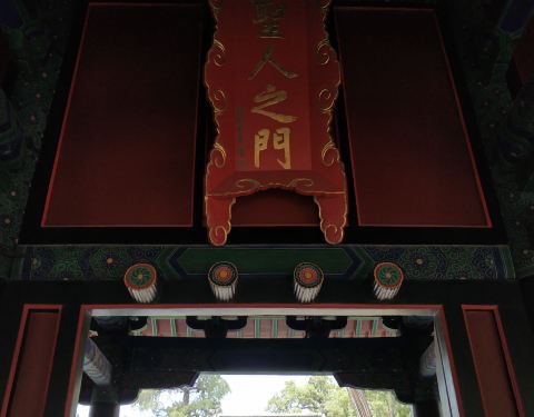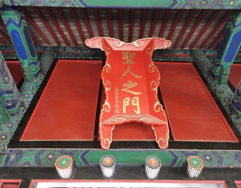 孔庙位于曲阜城中心,圣府大门就是指这个孔庙大门,坐北朝南,大门正中上方高悬蓝底镀金字“圣府”匾额孔庙位于曲阜城中心,圣府大门就是指这个孔庙大门,坐北朝南,大门正中上方高悬蓝底镀金字“圣府”匾额。整个孔庙都是这个风格,看这门方灰尘积了老厚,油漆斑驳,彰显咱身份就是老夫子。