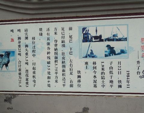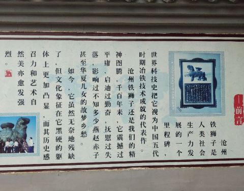 景点真的很小!据说自上世纪五十年代到2000年的不到50年间,铁狮子曾历经四次大维修走进这个景区大门,映入眼帘的是四合院的院落,一座铁狮子伫立在那里,而铁狮子锈红色的铁架支撑着它。据说自上世纪五十年代到2000年的不到50年间,铁狮子曾历经四次大维修。景点真的很小!