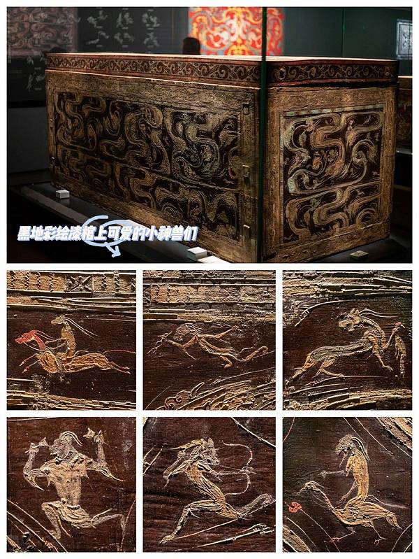 ✔️黑地彩绘漆棺:仔细找找上面画的110多个神怪动物