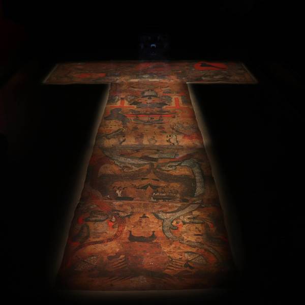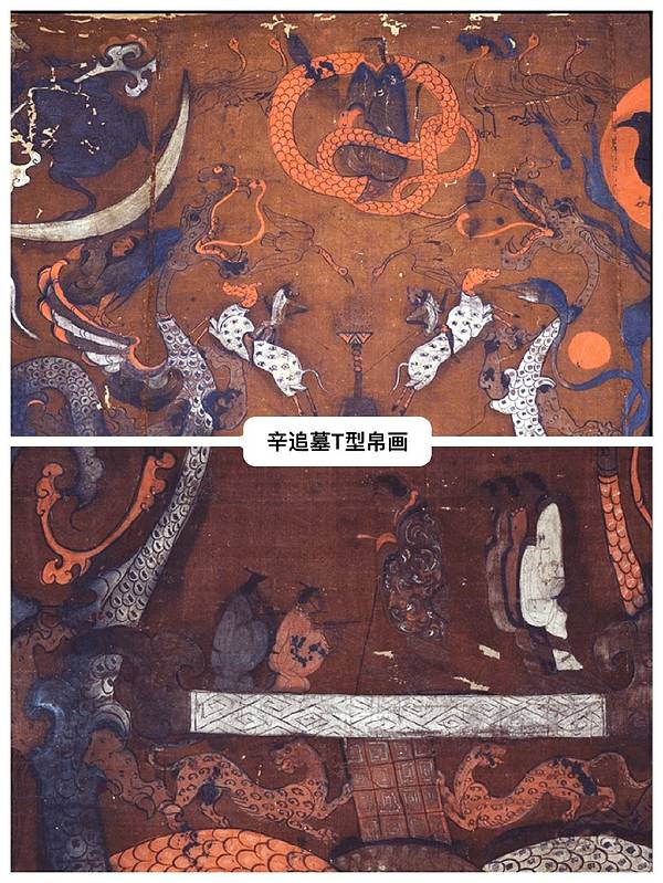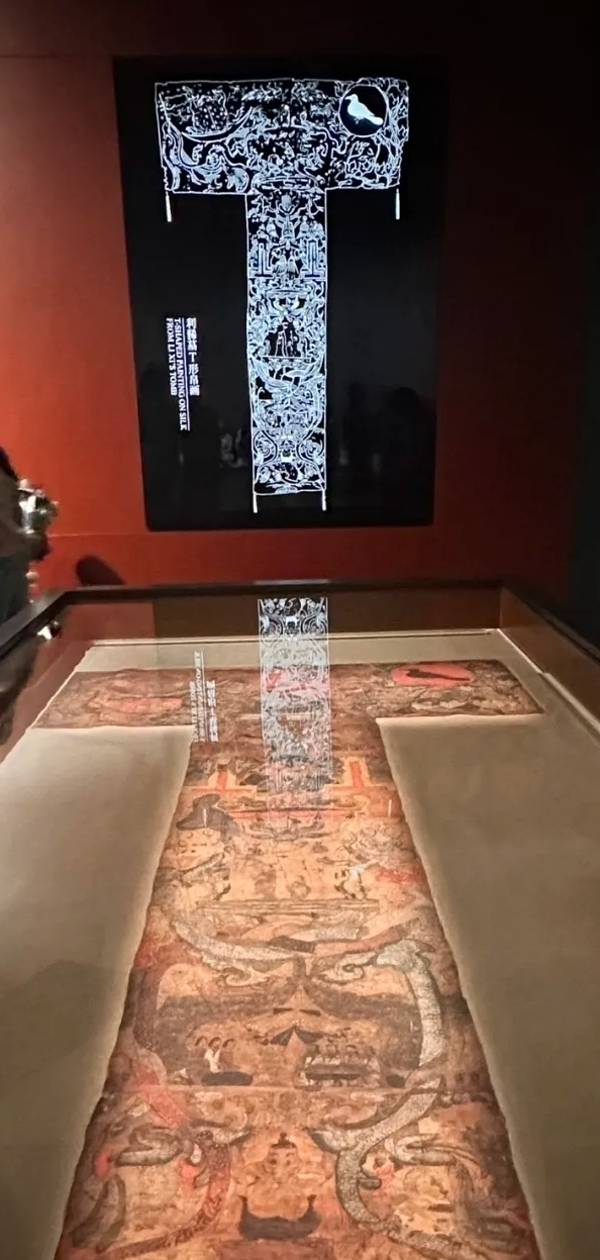 ✔️辛追墓T形帛画:上过国家宝藏,极其巧妙地描绘了天上/人间/地下三部分,太阳上的乌鸦是太阳黑子。一定要看旁边播放的帛画解析短片
