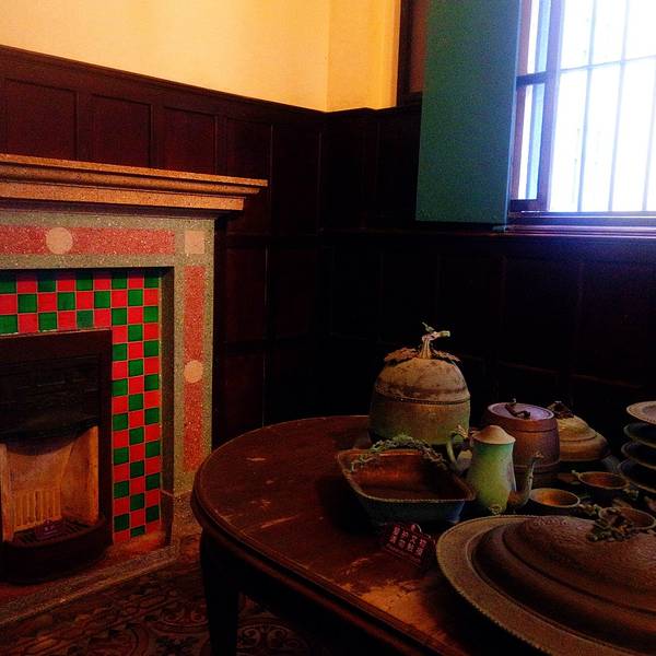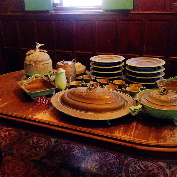 【别墅展示区域】主楼的别墅区十分有意思,从一楼开始就是展示当年的桌子,建筑风格以及餐桌文化,包括厨房,炉子,碟子,餐具,以及洗手间。二楼展示的主人房,佣人房间等等,还有露台,以及一些日常生活工具,基本都是以木质为主,雕花是巴洛克式的对称拱顶风格,当然还掺杂着中国的特色,十分有趣。楼梯间还会展示十分精美的墙画画作,地上铺上红地毯,仿佛穿越到了民国时期。同时,一些家具,留声机等等都是从国外购置归来,配以中国的建筑,独特的对比,也是一番风味。