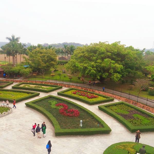 【花园区】花园区的巧妙,不愧是花了将近十年心血才建成的,主楼后的花园不单只有欧式的乘凉庭院,还建设有凉亭等等,其鬼斧神工布置放在了石柱或是墙壁的精心雕琢,还放在了其为当时的人的便利上,可谓是相得益彰。而许多墙壁绘画者龙凤之类的画,是以神话为创作的壁画,同时还赋予了精美的颜色,这么多年还能保存于此。古色古香。