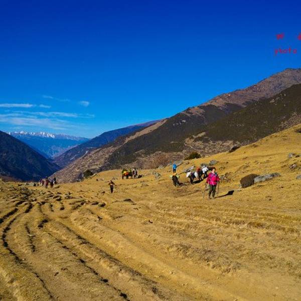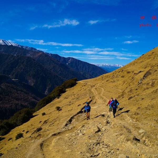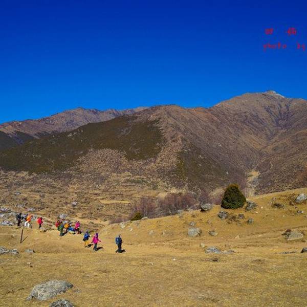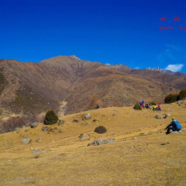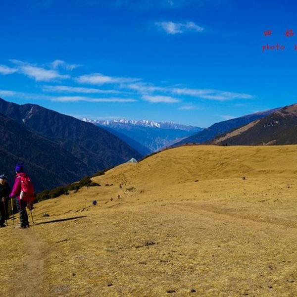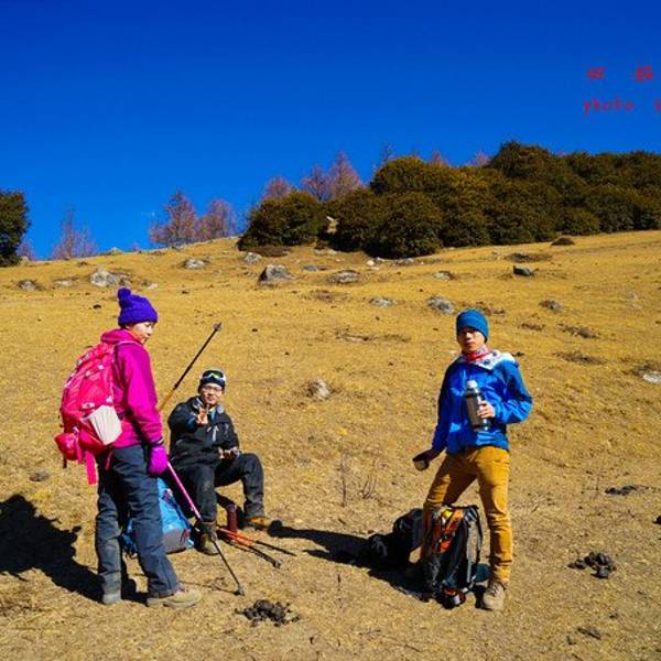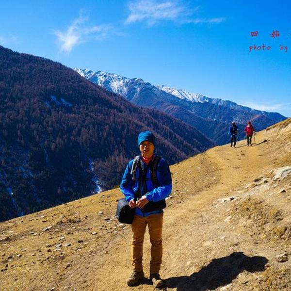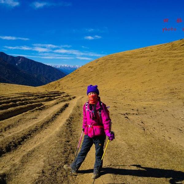 金骆驼 12点的朝山坪,非常适合拍纯风景。细看之下才发现,这里景色不错,难怪大家都在这里拍照片。居然泡起了茶这里的路都是黄土,冬季的草地草很少,拍下风尘仆仆的自己的影子吧,免得浪费这么高的阳光。视野非常开阔,终于一窥日隆镇靠山全貌了。感觉山顶海拔也不低。四周全景一览两个团队的一些队员都在前面休息。这里艳...这里的路都是黄土,冬季的草地草很少,拍下风尘仆仆的自己的影子吧,免得浪费这么高的阳光。视野非常开阔,终于一窥日隆镇靠山全貌了。感觉山顶海拔也不低。四周全景一览两个团队的一些队员都在前面休息。这里艳阳高照,大家都把自己裹得严严实实。这里的路分为两条,左边是直接到达山脚下的大本营。右边则是我们的前进方向,通往花海子。再给这个看似没有生机的大山来一张,然后我们就要出发继续走了。骑马上来的旅客,看她样子非常轻松自在。当时我想,来这里,就是要靠双脚徒步才有意义。当时现在如果让我选择,我肯定选择骑马直接上来。或许只有经历过,才会发现原来当初的选择,不一定是对的。由于最后部队的街坊都坐下来休息,我赶紧抓紧时间,拿着相机走到悬崖边,记录周围的一切景色。顺便说说自己的拍风景习惯吧,对焦模式我选择了区域对焦,让相机自己去判断对焦点,偶然发现对焦区域不合适,则稍微挪动相机取景重新对焦;由于阳光很灿烂,iso默认100,光圈一般选择F8,如果快门太慢才考虑增大光圈;因为本人用的这个蔡司镜头,网上评测最好的成像效果就是F8~F11,虽然可能效果对比不明显,但是至少人家做了评测,可信度高;而且光圈小的话,景深会深一点,距离不同的风景不会因此虚化。以上谈不上经验,只是自己的操作习惯。诺亚和mouse不知道在这个椅子坐了多久,这里景色不错,他们真会挑位子。如果是一对情侣手牵手坐在这里,感觉应该很不错吧。感谢mouse提供正面照一张。这位大哥坐在这里,感觉就是世外高人一样。琳达刚才说上来就拿相机拍照,结果一看到景色一兴奋,就把自己是摄影师的身份忘得一干二净,让我帮她拍照。好吧,反正刚才已经拍了那么多,不在乎多按几次快门。如果是拍人像,我会选择大光圈,然后手动选择单点对焦;单点对焦能保证人像的清晰度,而大光圈,既可以保证高快门,又有比较好的背景虚化效果。大部分时间里,我都是在人像和风景拍摄模式下不停的切换光圈和对焦方式。这里有个守卫小屋,下去发现门锁了,无法上洗手间。大家只能跑到房子后面“唱山歌”了。上来后,休息一下,目前还没有什么明显的不适,彦伟说大家已经明显落后了,要赶紧追上前方部队。好心人彦伟,帮我拍了一张。地上的道路呈现条状,由于这里没有车,我猜想是马匹走出来的。后面证明我的猜想是正确的。琳达变成蒙面女侠,没办法,这里紫外线太强了。虽然来到这里,路不是很陡,但是走起来也没有在平原那么舒服。我和琳达还有阿力,一直走在队伍的最后,而彦伟,背着琳达的相机,依旧做着自己的收尾工作。现在时间是上午11点20分。山脉很早就上来了,但是现在还是默默跟着米粒。山脉大哥一路都很照顾我们这里走得慢的人。后面就会提到。对面的山腰似乎有一条公路,但是不知道通往何方。后面我们走的路,就是这样,沿着山坡走,另外一边就是起伏的山峰。时不时会有协作拉着马匹超过我们。我们一看到马都纷纷避让,不然马一个不小心,就会把我们踢下山去。琳达走着走着,话渐渐少了,似乎已经有些疲惫了。山脉大哥的速度还是比较快,很快又跑不见了。陪伴着米粒的换成了mouse。而彦伟,则陪着阿力走在后面。琳达和我放慢速度,等到了最后的阿力。最后几个人的合照。阿力从急升坡上来,体力已经消耗了差不多,现在基本走走停停。前方两个人怎么了,怎么感觉是体力很好的mouse走不动,米粒在后面推呢?一路抓拍琳达的倩影,我已经养成了拍琳达的习惯了。同时,我也已经对琳达给我拍照不报任何希望了……米粒大姐的特写,以及后面紧紧跟随的彦伟。彦伟不是体力不好,而是他也是走走拍拍。毕竟风景太好了。琳达一直鼓励着阿力,两个曾经在同一个教室上课,现在一起来户外受虐。我一直很好奇mouse的体力,感觉很好走得很快,但是有时候又表现得很累走在队伍最后。这个时候,接近中午12点了。路上的旅客和马匹都渐渐少了。整个路上,就只有我们几个稀疏的人影在慢慢挪动。仰望苍天的阿力,你是否后悔来这里受虐了,是否想念家里的空调饮料外加网络呢?琳达彻底不说话了,已经很累了。mouse的特写。米粒的特写。阿力还有力气摆pose。路边一个游客独孤的坐着,似乎要收买路钱的高手。然后,我猜错了。大家都走得不快,没有兴奋,也不绝望,心情很平淡。最辛苦的就是我,前后左右不停的拍。走的过程中,杨协作带着马匹超过了我们。他们比我们晚出发很多,却依旧超过了我们。图中的是路人马队,不是杨协作。我们赶上了已经在前面停留吃完午餐的诺亚。我们实在是太慢了。走在最后面,连吃东西的时间都没有。诺亚,你拿着水壶不累吗?12点的朝山坪,非常适合拍纯风景。作为摄影爱好者,遇到没有人的情况,肯定是很开心的。这也是为啥我以往爬山,喜欢下山的时候走最后的原因。不过今天走最后,体力也是一个因素。世界上仿佛就剩下我们几个人,在这茫茫大山里。一步一步安静的前进
