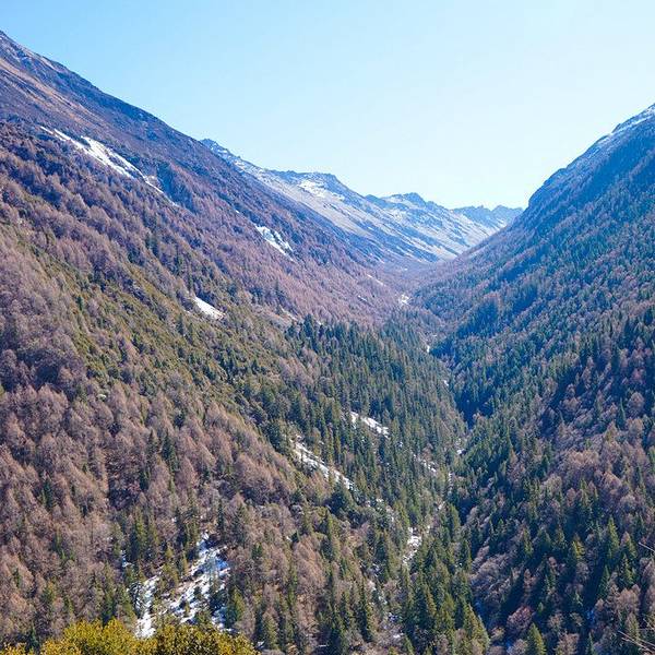 线路2:第一天乘车至喇嘛寺,步行或骑马到两河口设营;第二天至第五天顺两河口而上,攀登婆缪峰或其他山峰;第六天返回。