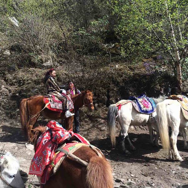 四姑娘山的马匹基本都是当地农民自己喂养的,由当地政府统一管理,租马费有基价,然后根据骑行的距离可与马夫讨价还价,一般为50元-200元,但黄金周上涨得厉害。注意,租马费中已经包含了马夫费等其他所有费用。登山运输工具由日隆乡长坪村提供,1人需要3匹马,每匹马40元/天,马夫20元/天,高山向导费用50-60元/天。草地林间路较烂,雨后更甚,很多路被马踩得难以行走。为节省体力,一般提前租马匹驮运行李,体力稍差的或为节省体力,一般也租马骑行。