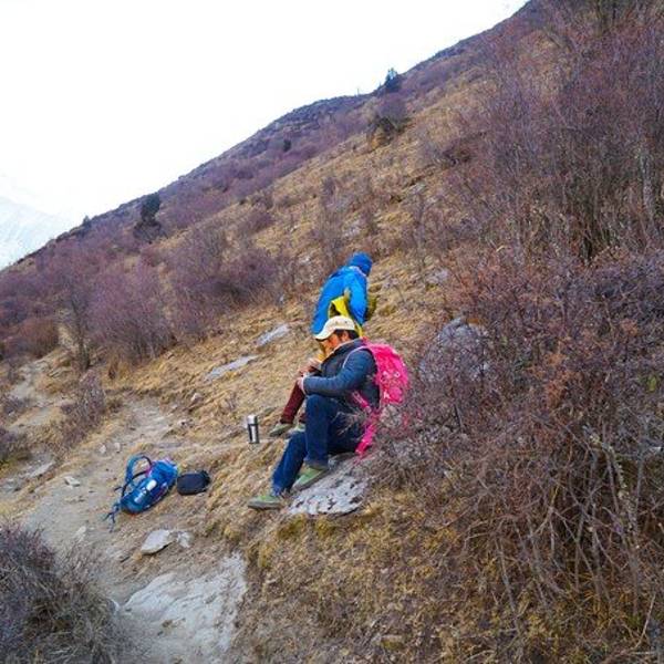 4 、高海拔地区徒步和攀爬都会比低海拔地区更加艰难,切忌心浮气躁,用力过猛。走路和做事都要慢慢来,讲究节奏,多加休息。特别是离开营地向上攀爬时,应该一步一挪,不宜脚步过急。视个人情况,每上升一段距离,稍作休息,调整呼吸。高海拔地区氧气稀薄,保持呼吸的通畅和效率特别重要,尽量保持有节奏的深呼吸,摄取足够氧气来缓解高山反应和疲劳感。