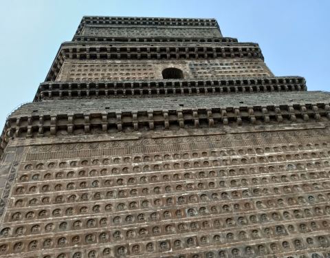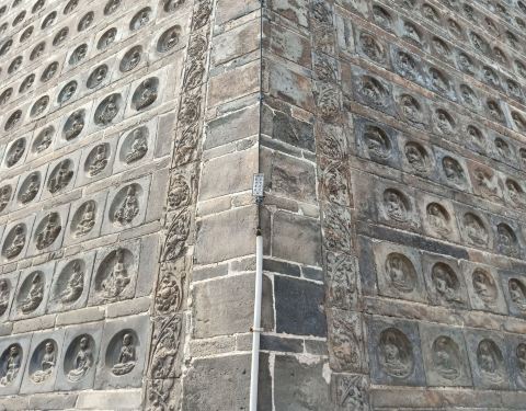 五一高峰期竟然没人去。佛塔精致,每块砖上都有石雕,和龙门石窟一个性质,可惜的是佛像的头部都被割掉了,可以想象当初辉煌的时候满塔的斑斓色彩是多么绚丽多姿。希望对文物多加保护,而不是变为敛财工具