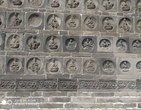大过年的能跑这来旅游那也是另类中的另类了。坐出租车过来的路上看到周边房子破破烂烂,路也是坑洼不平,到处满是灰尘,一片凋零的模样。看大门口牌子上写着成人票30,结果售票的大爷说15,儿童7块5,比网上买票便宜多了。一个院子就围着这么个小半截残塔,而且还不让上塔,游客比铁塔那边还少。塔身外侧每一块砖中间都雕有一尊佛像,相貌姿势各不相同,喜欢的人自当细细品味。只不过去的那天风实在太大太冷,随便看了看就落荒而逃了。