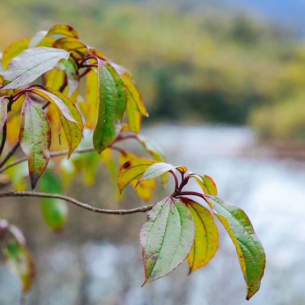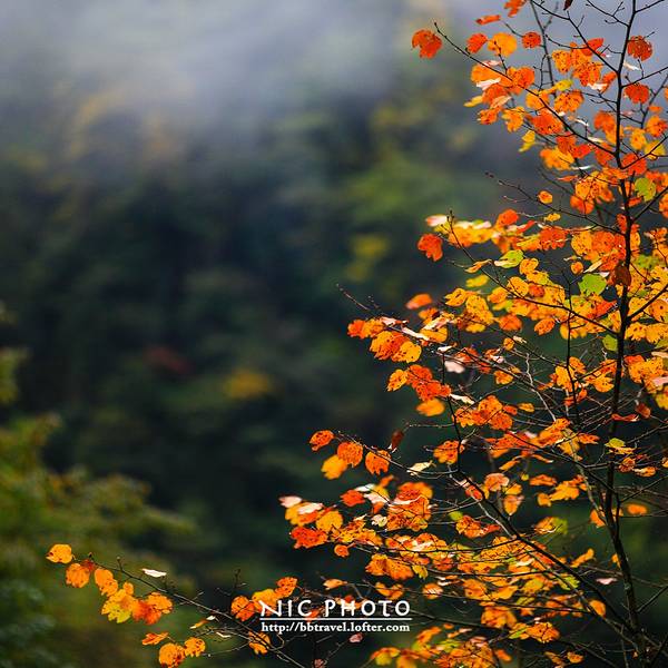 秋季来临,接连的秋雨,迎来了霜降,东拉山的树叶逐渐由绿色转为红色。