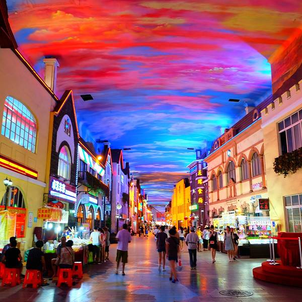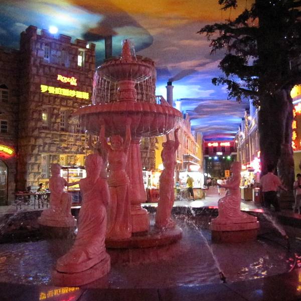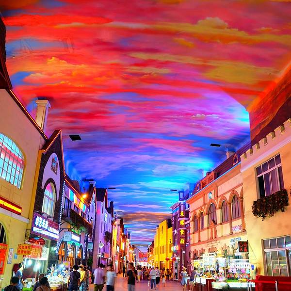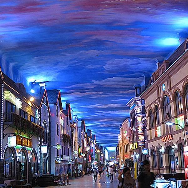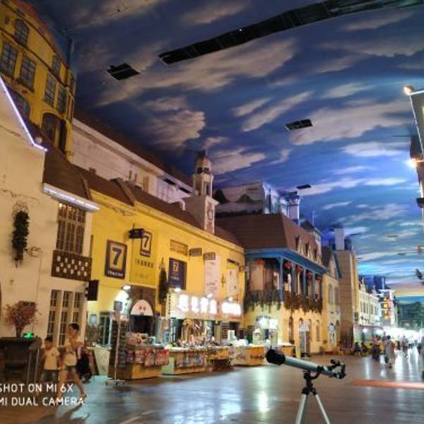 实用 从辽宁路的路口进来,首先可以看到一个欧式的喷水池,以及一个大型钢琴雕塑,景点的调性就几乎猜出来了模仿澳门以及LV威尼斯人的产物,外面看不出任何玄机,内部是一条不短的商业街。从辽宁路的路口进来,首先可以看到一个欧式的喷水池,以及一个大型钢琴雕塑,景点的调性就几乎猜出来了。层高不算很高的购物中心内...模仿澳门以及LV威尼斯人的产物,外面看不出任何玄机,内部是一条不短的商业街。从辽宁路的路口进来,首先可以看到一个欧式的喷水池,以及一个大型钢琴雕塑,景点的调性就几乎猜出来了。层高不算很高的购物中心内,屋顶是彩虹版的彩虹,画风比较粗糙只是有颜色而已,也不说来个人物或者生活场景画,比较容易审美疲劳。往里面走,街边两侧都是卖小吃、外贸服装以及一些纪念品的店,也着实算不上很有特点,整个街区大约半小时就逛完,由于光线较暗,拍照还比较容易糊掉,建议多确认几次。天幕城内有个7天连锁酒店,位置还算可以,主要是门外公交路线很多。本身紧邻啤酒街,可以考虑一同游览,步行10分钟内到 展开 2015-08-10 23:10