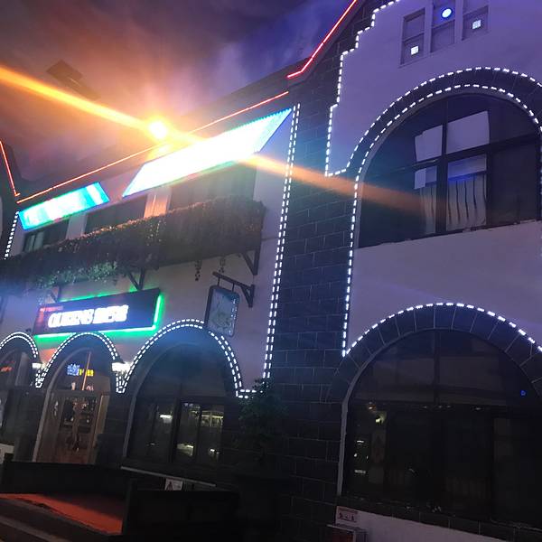 从青啤博物馆往西北走,不到1公里就到啦。说起青岛的景点,天幕城一定算是一个神奇的地方。因为,门口看它是这样的,像一座欧式城堡。但是当你踏入这座城堡的大门的一瞬间,一切都变了。明到暗,由白昼瞬间来到了黑夜。于是,天幕城的大门似乎是推开了一个新的世界,每一处都色彩艳丽,像是童话世界一般。