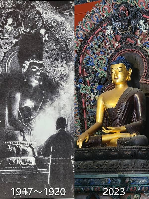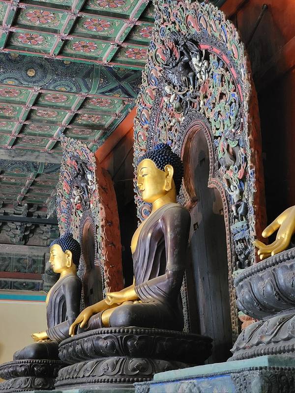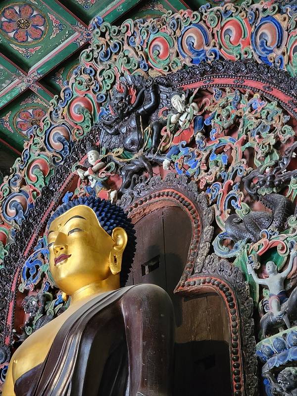 🟢慧日常辉殿始建于明万历五年,建筑为庑殿顶。1958-1967年间大殿作为库房,堆放的物资讲佛造像掩盖,竟意外使殿内的造像和布局得到完整保存,成为一大看点。