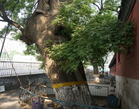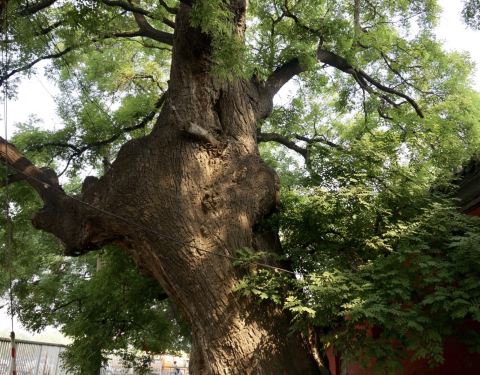 的确,西侧一株树干特别粗大的古槐伫立在那里,竟然还没有空心,真难得。 网上说,万寿槐在万寿寺门前!!!大修,对外开放最少要在两年后。今日35度高温,又是臭氧和光污染,再就是严重的堵车。即便如此,依然按耐不住对“万寿槐”的向往,一大早跑到西三环的万寿司,闭门羹。在大修,郁闷。 网上说,万寿槐在万...!!!大修,对外开放最少要在两年后。今日35度高温,又是臭氧和光污染,再就是严重的堵车。即便如此,依然按耐不住对“万寿槐”的向往,一大早跑到西三环的万寿司,闭门羹。在大修,郁闷。 网上说,万寿槐在万寿寺门前。的确,西侧一株树干特别粗大的古槐伫立在那里,竟然还没有空心,真难得。询问看门人,说是庙里还有一棵,没有外面的这个粗大,说那庙里的是万寿槐。 庙里的看不到,只隔着院墙,看到高出庙宇的部分树冠。越是看不到,越是好奇,无奈,怎么说都不让进去。这倒也好,反倒是让我认定了“庙前有元代万寿槐”。 那无言的“巨人”,800岁的“老人”,有什么能比他长寿呢?除了古木,有什么能让我们直面千年的穿越呢?每一株古树,都值得人们敬畏。 展开