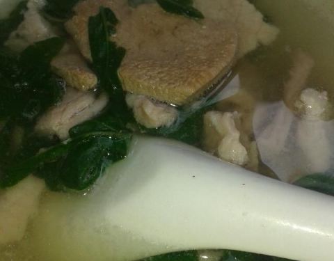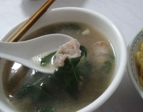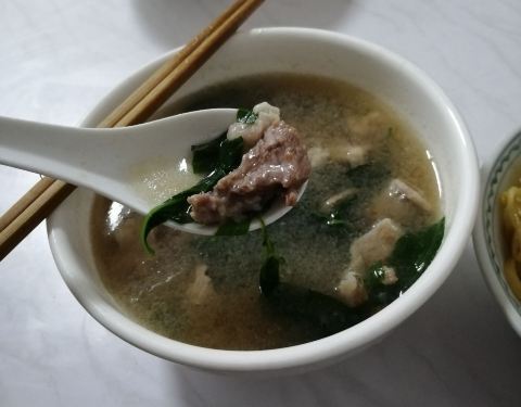 这碗汤也是经典搭档。猪内脏和猪肉片,滑嫩鲜香,枸杞叶第一次吃,入口有点滑滑的,很好吃