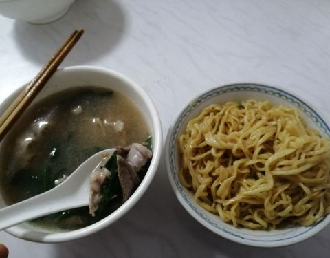 【位置】 离文化公园不远,从李惠堂纪念塑像步行大概5分钟。 【腌面+三及第枸杞汤】12 腌面的碗底部是葱花和一点猪油,面条煮熟后码放在上面。端上来迅速挑拌均匀。热气把葱香激发到极致。即使是单吃这一碗腌面,都觉得很美味。 这碗汤也是经典搭档。猪内脏和猪肉片,滑嫩鲜香,枸杞叶第一次吃,入口有点滑滑的,很好吃。汤味更让我惊艳,以前没喝过类似的。明明是放入猪肉片和猪内脏煮过的汤,但一点腥臊味也没有。