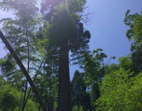 继续走可以看到黄巢石像和关帝庙,路旁有“双宝树”,令人震撼,真正参天的古树,可惜另一棵只留下半截了