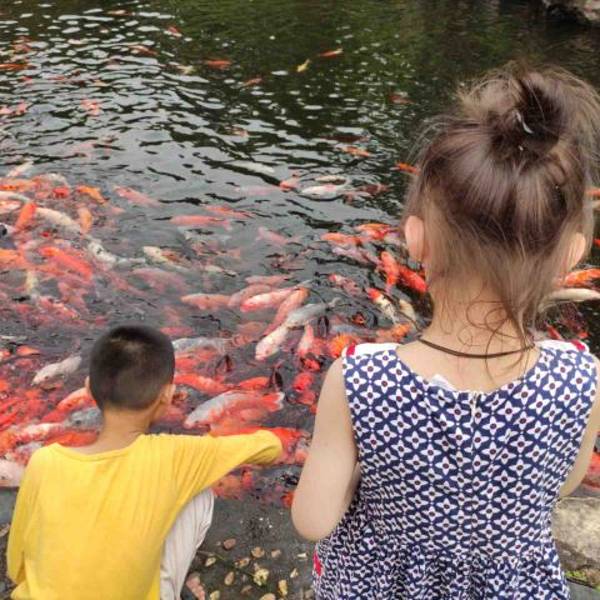 ✔️可以喂鱼(园区有好几处都可以喂鱼,非常多非常漂亮的锦鲤,小七就看到红色锦鲤、银色锦鲤、黑色锦鲤,好兴奋)
