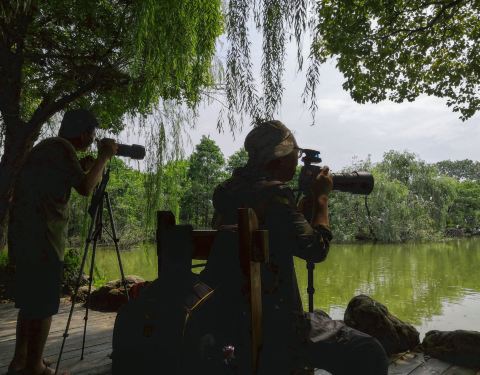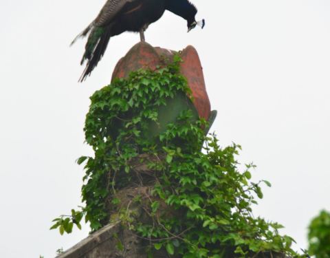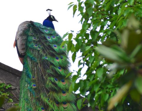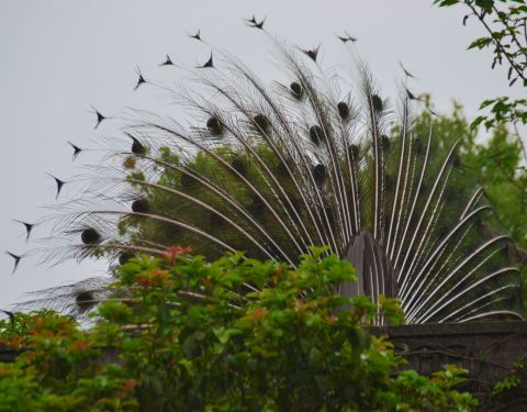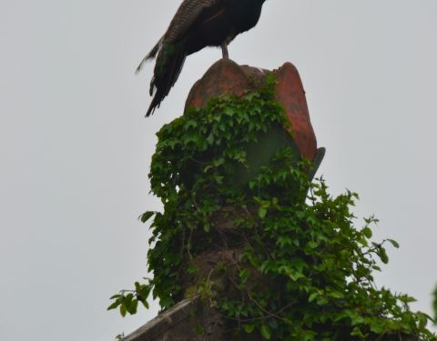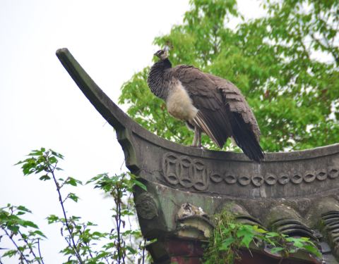 这一次却遇见古建屋顶上美丽的孔雀,引得大家一阵欣喜,仰望它的美丽,仿佛期盼的阳光终于出来了周末天公不作美,阴天无云,我们还是决定去天香园观候鸟。这一次却遇见古建屋顶上美丽的孔雀,引得大家一阵欣喜,仰望它的美丽,仿佛期盼的阳光终于出来了。
