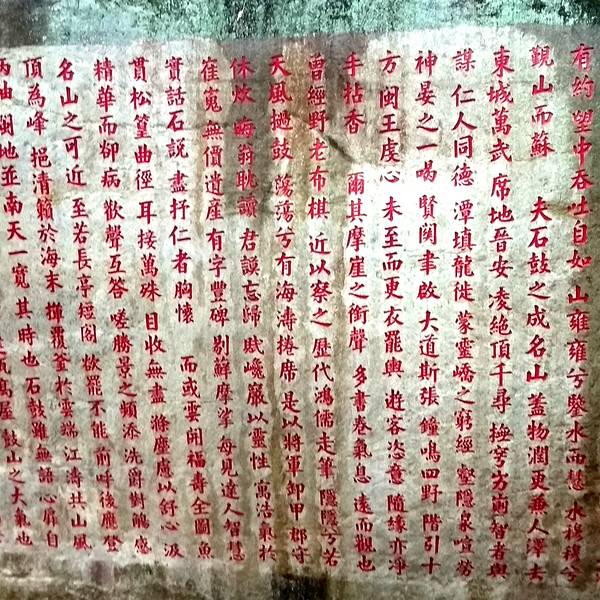 鼓山的摩崖题刻不下300余处,宋代的题刻就达109处,这说明早在宋代,鼓山就是文人达官赏览胜景的所在文物价值很高的摩崖题刻鼓山的一大特点,比比皆是,其中不少是历代名人的题刻。据统计,鼓山的摩崖题刻不下300余处,宋代的题刻就达109处,这说明早在宋代,鼓山就是文人达官赏览胜景的所在。
