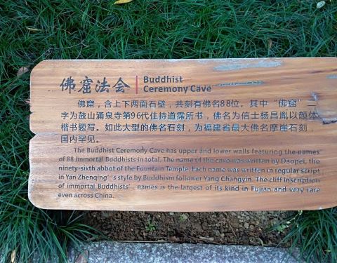 现在有的景点已看不到了,但大部分景点仍然惟妙惟肖,连同那美妙的神话传说,让游客感觉到大自然的无比神奇达摩洞十八景位于游客服务中心以东,鼓山涌泉寺之西,又称 “十八景园”。十八景园总面积 33 公顷,园内峰奇石怪,洞窟幽深,古木繁翳,野花烂漫,民间传说源远流长,古今题刻美不胜收,为天然的 “大地岩雕”、...达摩洞十八景位于游客服务中心以东,鼓山涌泉寺之西,又称 “十八景园”。十八景园总面积 33 公顷,园内峰奇石怪,洞窟幽深,古木繁翳,野花烂漫,民间传说源远流长,古今题刻美不胜收,为天然的 “大地岩雕”、”绿色宝库” 和 “书法艺术长廊”。 清朝道光至咸丰年间诗人魏杰,根据这里的自然景物和民间传说,整理编写成十八景,刻于达摩洞外的一面岩壁上。 这十八洞景经过风化瓦解、岁月淘洗,现在有的景点已看不到了,但大部分景点仍然惟妙惟肖,连同那美妙的神话传说,让游客感觉到大自然的无比神奇。 原先魏杰整理编写的十八景中的福寿泉图、蚁艇渡潮、渔灯普照、狮子戏球已不复存在,而新添了一笔成虎、玉石云梯、俯州望江、古月灵塔等景点。 我们凭身份证买了两张十八景园老人票(¥5元 / 张,原价¥10元),有时间的话,十八景园还是值得一游滴! 图1:鼓山十八景公园南大门; 图2:十八景之一八仙岩洞 - 洞中有洞,上下勾连,宛如迷宫,别有洞天; 图3:石亭 - 八仙香位 - 西望瑶池(清代魏杰,号拙夫题刻); 图4:十八景之一 - 玉石云梯 - 128 级; 图5:佛窟位于罗汉台上方,为清代鼓山涌泉寺主持道霈(1614~1702年)所题的摩崖题刻及刻着 55 个佛名的岩壁; 图6:新辟景点 - 镇虎岩上一笔成虎石刻 - 镇虎岩崖高 2.1 米,宽 1.3 米; 图7:十八景之一 - 金蟾出洞; 图8:十八景之一 - 蟠桃满坞; 图9:法华岩洞由两个互通的岩洞组成; 图10:法华岩洞内刻有清代魏杰(号拙夫)的题词 “且憩”。 展开
