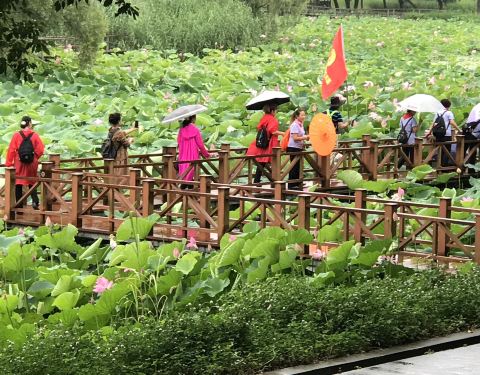 常期居住城区的朋友们可以在夏天去那里玩一下,其它季节不提倡。荷花开时,釆摘莲蓬