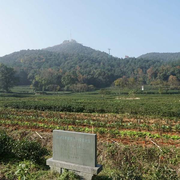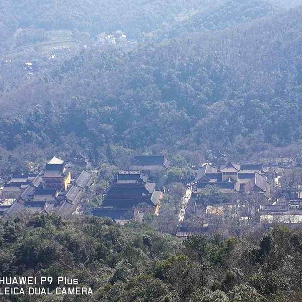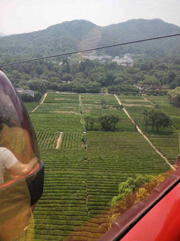 北高峰山上有天下第一财神庙,山顶上的景观很漂亮,往下看可以看到一片绿色,很多茶叶地。