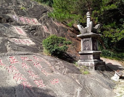 到涌泉寺可以坐索道,也可以自己开车上去。当然走上去的话一路有石刻,蛮美