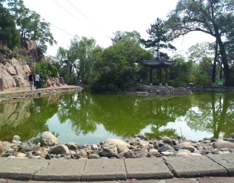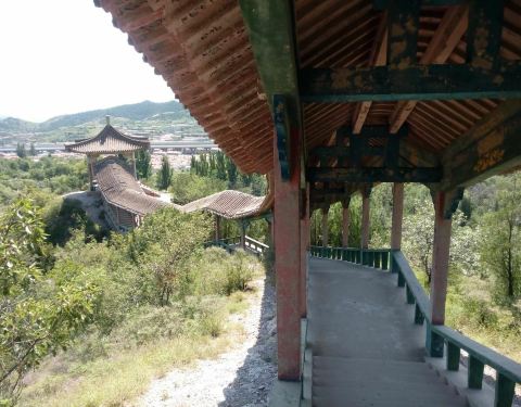 一个可以登高望远的好地方,长廊蜿蜒逶迤在山峦上,我们在长廊的亭子里休憩,凉风习习,煞是爽快,在这里可以俯瞰张家口市,山不高,大人小孩老人都能登上山的。山下有水母宫的庙宇,枯树,预示风调雨顺。也有香客。还有一个儿童喜欢的迷你动物园,适合小盆友。门票十元。游玩一个小时差不多。