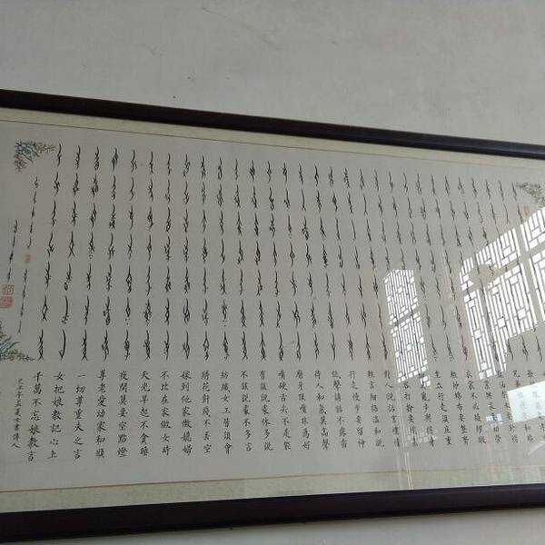 女书园,这是为给客人更集中地介绍女书而建。一进门就看见院子的影壁上歪歪斜斜的几个字,根本不认识,请教了身边的讲解员,她说这四个字是:江永女书。 而对于我们来说,这基本上是天书。字体是歪斜的,右边...