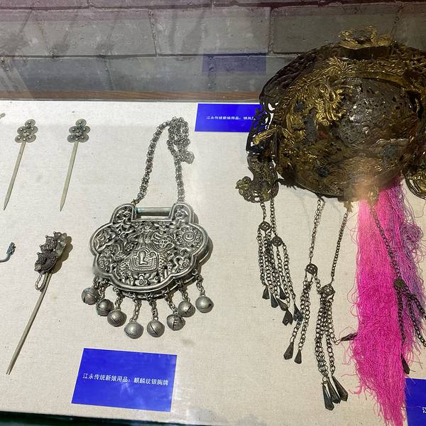 10月2号去的女书馆。离江永县城不远,专门建的一个女书的博物馆。里面有几个展厅,然后,有专门的讲解员讲解女书,还有女书讲堂,可以听讲解员唱歌,也可以叫她们教我们写自己的名字用女书文字写出来,感觉挺好玩...