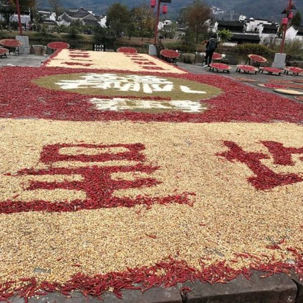 村庄除了古建和乡村自然肌理的保护外,进村前首先是黄山非遗体验馆,进村后是晒谷场和村广场,恰逢秋收农事丰收气息十足。