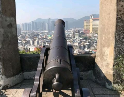 就是大三巴旁边的小路走上去,路不是太难走,而且还会看到很多健身器材还有椅子,周边感觉都是挺空旷的,这些都是历史战争留下的据点,瞄准的都是入海口,不过现在都已经填海建房了,每个角度都是对着葡京,有兴趣的可以探究一下。