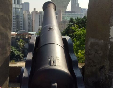 这座炮塔是当年葡萄牙占领澳门所建的,对着入海口,现在已经成为了游览的地方,虽然很多年了,但是依然保护得不错,只是表面已经摸得很平滑了,经常看到市民在这健身散步,由于所处的位置高,可以看到澳门周围的景色,