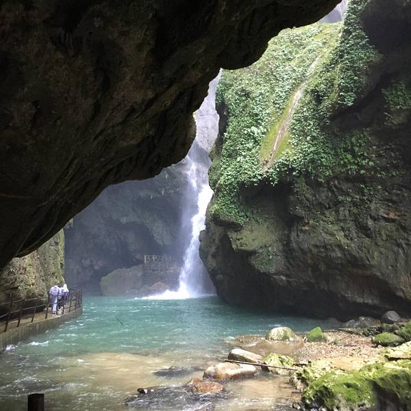 昨天下雨了,顺着谷底走了一圈,导游很负责。景色真心不错啊,特别是瀑布和洞穴,还有神奇的悬棺