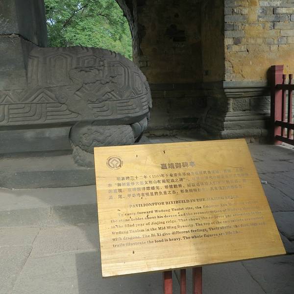 玉虚宫建议游玩时间:我个人是非常喜欢左右对称的建筑的,强迫症患者伤不起。慢慢的欣赏这些斑驳的墙面,被时光风华蹉跎了的石地板,用时2个小时是最为合适的。玉虚宫和武当山相比的优势:之所以极力推荐玉虚宫,是因为你在武当山上基本上很难看到武当武术的表演,以前在逍遥谷,现在各种表演安排在了武当大剧院好像,但是门票不便宜哦,但是玉虚宫的早餐有附近的武校,包括一些喜好武当武术的外国友人们,都会来到武当山做早锻炼,只要不骚扰到他们,只是安静的围观拍照,都是被允许的。而这一切都是不用花一分钱的哦!玉虚宫看点:除了对称的建筑,还有篆刻圣旨的龟驮碑也是两两对称。喜欢这些古文化的朋友,千万不能错过这里。