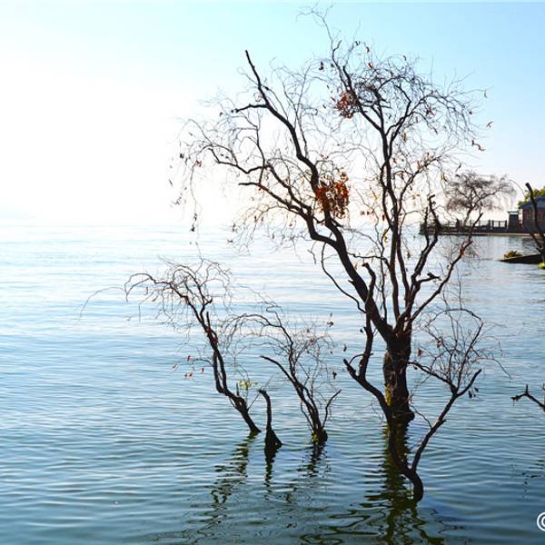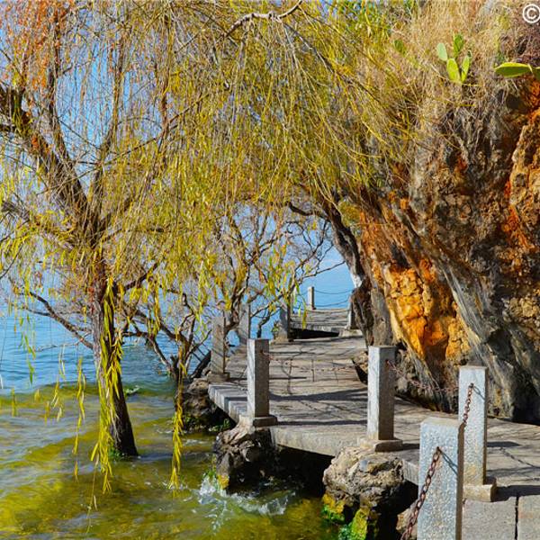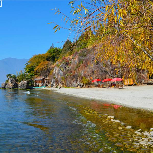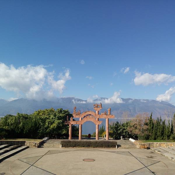 岛上最著名的景点就是一座白色的观音像,靠近水边的地方还修建了一小片沙滩以及许多拍照的设施,总之是一个非常惬意的小岛,如果你在双廊有半天时间,建议来这里看一看。