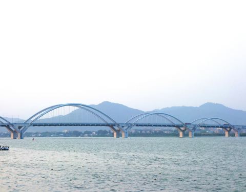 图中的是金山大桥,江边有亲水的休闲栈道。潮州最美跑场推荐:滨江长廊。潮州最美跑场推荐:滨江长廊