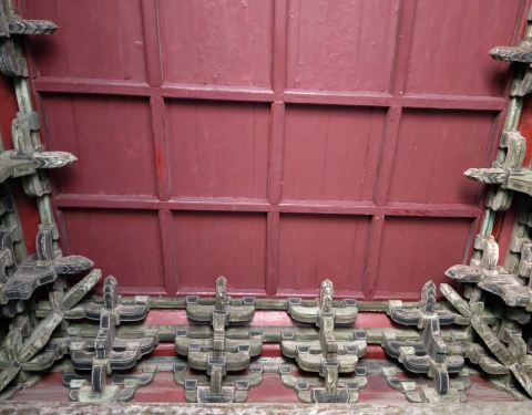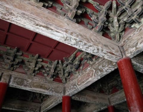 据说这里以前是一个藏经阁,距今已经有超过1000年的历史了,是这边最古老的建筑物之一。 现在里面最主要就是卖一些纪念品的,有一些导购员在里面。 进去里面还可以看到上面一些比较古老的痕迹。 初建的年份是1018...