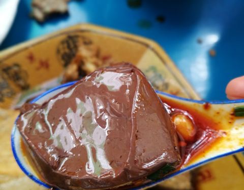 在大邑晋原镇,很普通的一家馆子,但是在点评上一直稳居大邑县美食排名第一,有网友说,比“游血旺好吃”,去得有点晚,我说点菜,老板说不给你菜单了,因为很多菜没有了,我给你配好,我好奇,还是问了下,配的:肥肠血旺,京酱肉丝,鱼香茄子,土豆丝,圆子汤。上菜速度飞快,几分钟搞定,除了京酱肉丝很一般之外,其余的菜都很好吃,特别是招牌菜肥肠血旺,肥非常好吃,味道恰到好处,肥肠嫩滑,血旺入口即化,简直太下饭了,五个菜一共95,四大俩小吃得很好。
