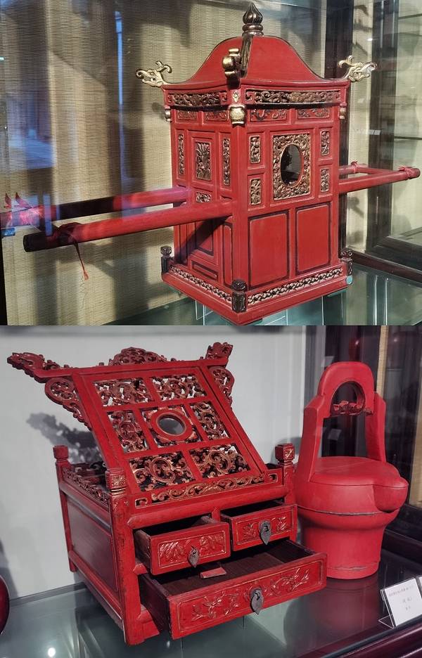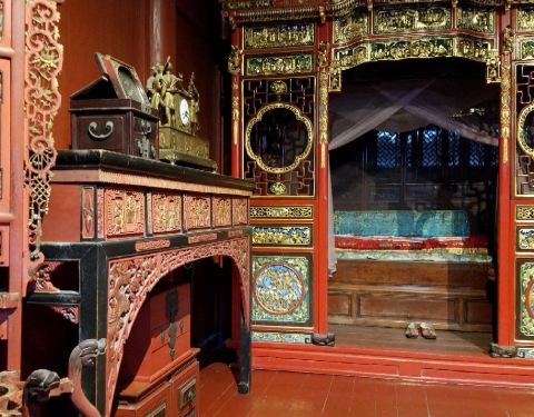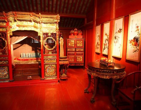 各厅大多素雅古朴,内秀其中。红莲阁...月湖银台第,通过绳武堂(主厅)、今白华堂(中堂)、议事厅、婚房、家塾、宴席厅、雅玩室、沐浴房、绣房、闺房、佛堂等的场景式陈列,反映了官宦学士人家的生活环境、家居艺术。