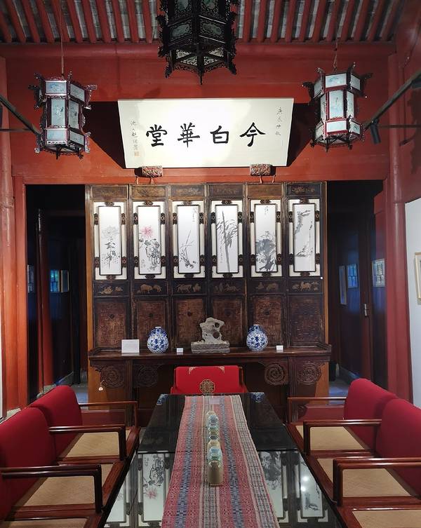 各厅大多素雅古朴,内秀其中。红莲阁系宋时旧址,曾为书楼。今白华堂是银台第的中堂,堂上复原六扇甬式屏风。
