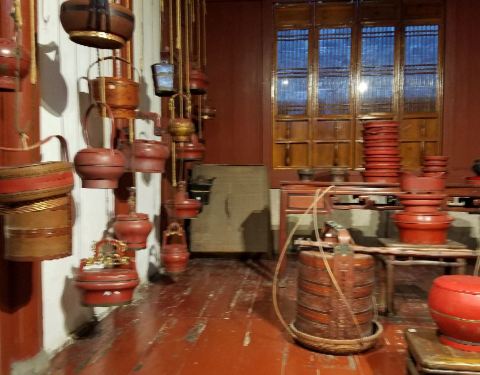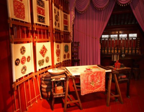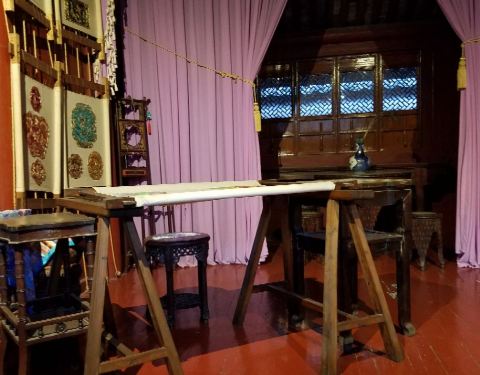 寻访红莲阁旧址,藏在月湖的市级文保单位月湖银台第,通过绳武堂(主厅)、今白华堂(中堂)、议事厅、婚房、家塾、宴席厅、雅玩室、沐浴房、绣房、闺房、佛堂等的场景式陈列,反映了官宦学士人家的生活环境、家居艺术。