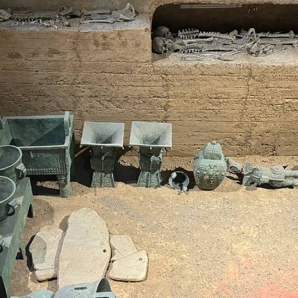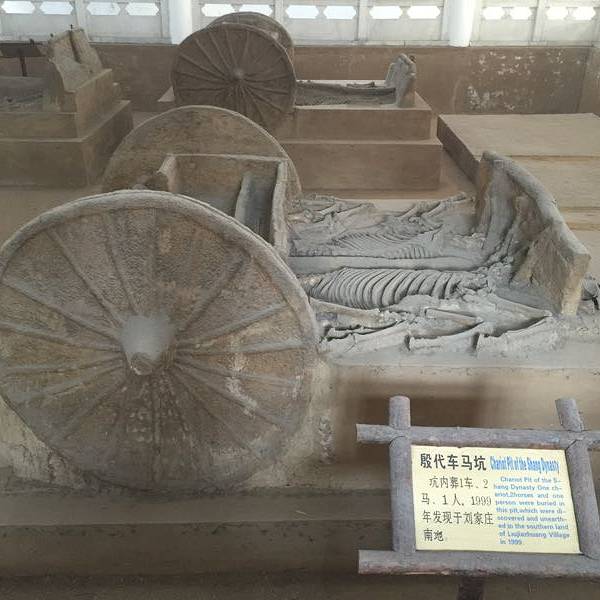 早商的扩张,主要依靠的是青铜技术;而到晚商—殷墟时期,商人又获得了一种对王朝至关重要的技术:马车。在车马坑就能看到商代马车构造,同时也能看到奴隶社会残酷的杀殉制度。