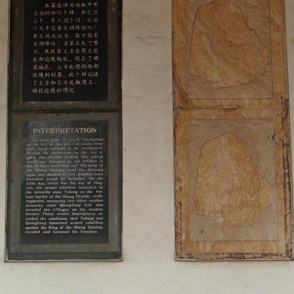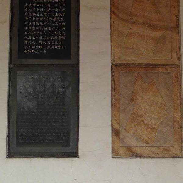 碑林,内容真的很丰富,但实在太多了,很少能有人认真的看完的。我觉得这是设计中的一个败笔,应该放在官网上,因为基本都是小故事似的,认真看真的很累,也耽误时间,还不如在官网上做成视频让大家欣赏,也能更好地了解。多是甲骨文占卜的内容。